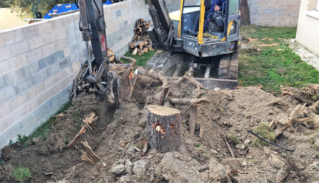 À Baillargues près de Vendargues dans l’Hérault, le dessouchage de cet arbre a été fait à l’aide d’une mini-pelle. En effet, le dessouchage d’un arbre peut devenir rapidement délicat, certains arbres disposent d’un réseau de racines très solides et très étendu ce qui rend l’utilisation d’une mini-pelle indispensable à l’opération.